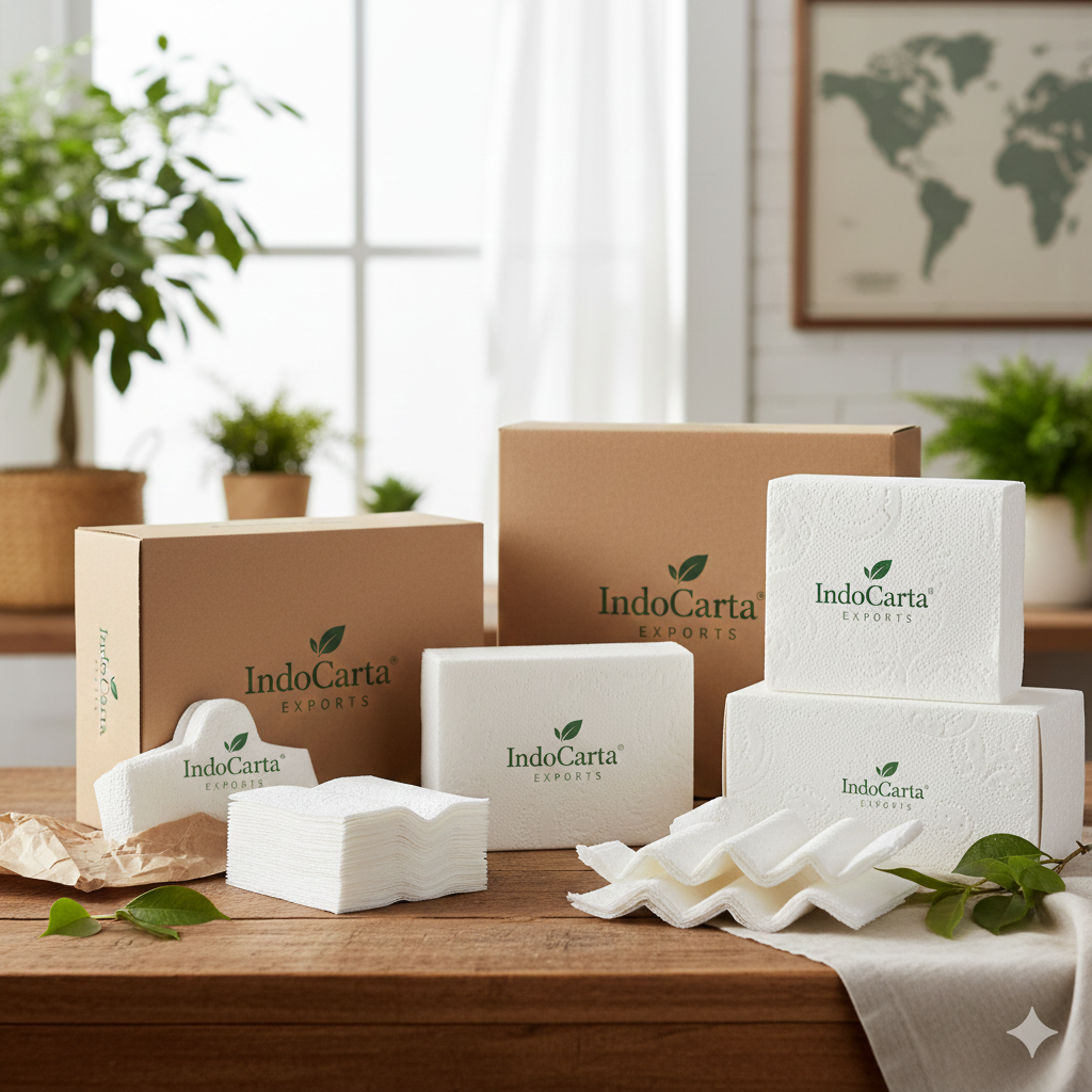 IndoCarta Exports supplies aluminium foil, platter, paper cup, baking paper, paper shopping bags, toilet paper, tissue, jumbo rolls, and bamboo products to distributors, hotels, hospitals, and retail chains across the globe. We handle everything from custom specifications to container logistics and export documentation.